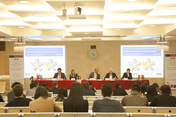 There are four research panels on the second day of the Workshop, each divided into two sessions. The four themes of the panels are: "A German Europe, a Chinese Asia? Leadership of Regional Integration in Asia and Europe"; "Regional Integration in Asia and Europe and the Role of the United States"; "Overcoming the Crisis: Economic and Business Prospects in the course of Regional Integration in Asia and Europe"; and "From Borders to Bridges or Vice Versa? Regional Integration, Peripheral Countries, and Sub-State Actors".