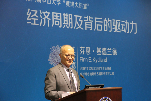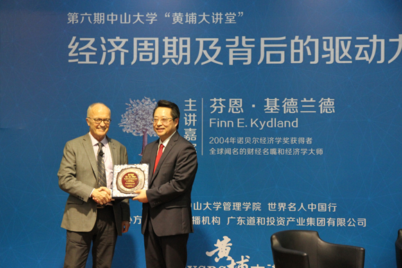 On June 22, the 6th SYSU Whampoa Forum was held in the International Conference Hall at Sun Yat-sen Business School (SYSBS). The theme of the forum was "Driving Forces behind Business Cycles", presented by Dr. Finn E. Kydland, the famous Norwegian economist, Henley Professor of Economics at the University of California, Santa Barbara, and the Nobel Prize laureate in 2004. In attendance were more than 500 college students, faculty members, research scholars and business representatives.
