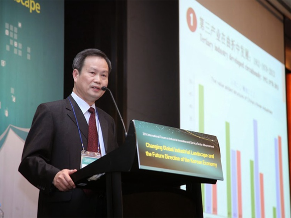 The “2014 International Forum on Industrial Innovation and Service Sector Advancement” was sponsored by the Ministry of Strategy and Finance, and jointly held by the Korea Development Institute and the Korea Health Industry Development Institute. At the forum, more than 30 scholars from USA, Germany, China and South Korea were invited to make speech and more than 200 participants from South Korean academia, government departments and enterprises attended the meeting to share information on policy practices and business strategies of countries around the world and to seek future directions for national industrial development strategy.