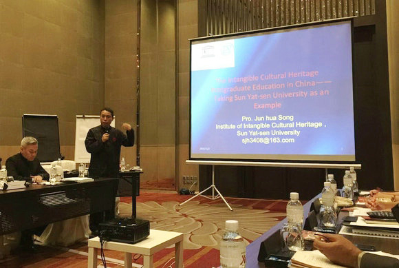 Prof. Song gave a presentation titled “The Postgraduate Education of Intangible Cultural Heritage in China – A Case Study on Sun Yat-sen University”, in which he introduced the experiences and problems of our educational practice on this theme, and proposed that the UNESCO and the universities in the Asia-Pacific region should collaborate and develop the postgraduate program on Intangible Cultural Heritage (ICH) and make it sustainable. The proposal was positively responded and discussed by the attendees at the meeting.