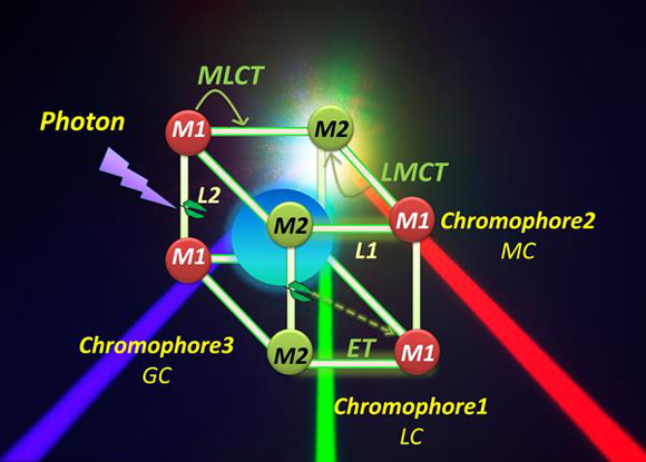 Prof. Mei Pan and Cheng-Yong Su’s group at School of Chemistry, Sun Yat-sen University has been engaged in the study of PL-functional metal-organic coordination assemblies, and accomplished a series of achievement in this area, including, 1) By presetting of opto-electronic and stereo-active Ru-metalloligand, photo-active metal-organic cages are assembled due to the thermal/kinetic stability discrepancy between different coordination bonds, thereby developing a photochemical/photophysical supramolecular container (JACS 2014; Nat. Commun. 2016); 2) Via the excited-state proton/energy transfer attributes of multi-level ligands, specific photoluminescence modulating and responding coordination assemblies are constructed, and applied to optical detecting and anti-counterfeiting film devices (Nat. Commun. 2017; Chem. 2018; Chem. Commun. 2018; Chem. Eur. J. 2018; JMCC 2018; JMCC 2017; JMCC 2016); 3) By controlling the spatially epitaxial growth of hetero-Ln-MOF hierarchical single crystals, domain- and orientation-tunable multicolor photoluminescence is achieved, and single crystal micro-device models combining spectral and spatial coding capabilities are established (ACIE 2017; Nat. Commun. 2018; Chem. Eur. J. 2016; Chem. Commun. 2015; Chem. Commun. 2014; Inorg. Chem. 2015; Chem. Mater. 2012).
