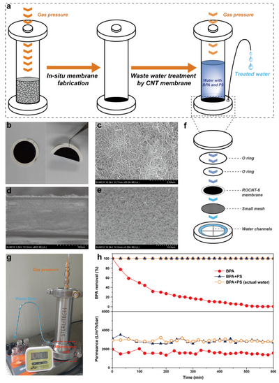 A deep study revealed that the intrinsic defects with unpaired spins on CNTs served as adsorptive sites to activate superoxides. Moreover, theoretical results demonstrated that the redox potential of this system could be tuned by proper defect construction on CNTs, rendering it significantly outperformed the classical oxidation processes for selective target pollutants elimination in actual wastewater. Furthermore, the defective CNTs were fabricated in-situ into membranes, which could treat the organic pollutants in a continuous flow mode.