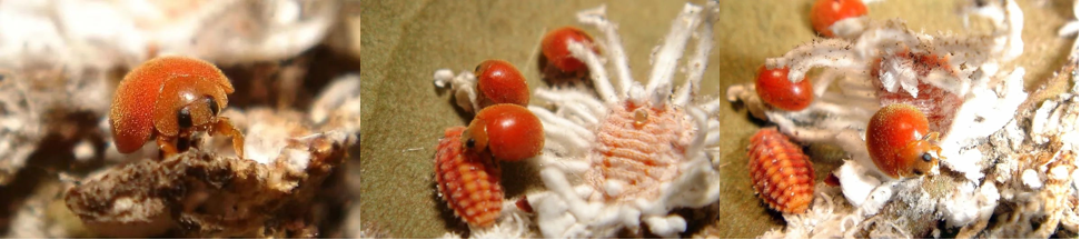 Figure 1. The ladybird beetle Novius pumilus feeding on Icerya scale insects