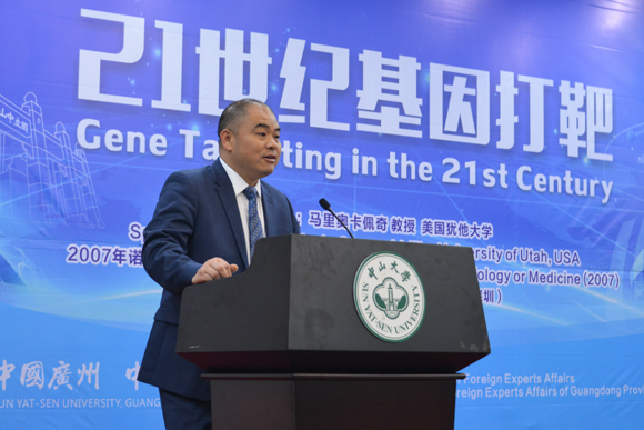 Professor Xiao Haipeng, Vice President of Sun Yat-sen University, delivered a welcome speech and expressed the hope that Professor Capecchi would join the newly built Shenzhen Campus and contribute to the “double first-class” construction at the University. He also presented the certificate of honorary professor of the School of Pharmaceutical Sciences (Shenzhen) to Professor Capecchi.