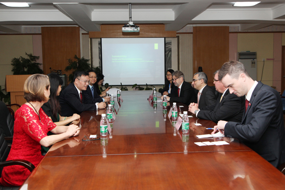 Professor Yan Guangmei, Vice President of SYSU, meeting with Mr. Dominic Trindade, Australian Consul-General in Guangzhou, and conference organizers