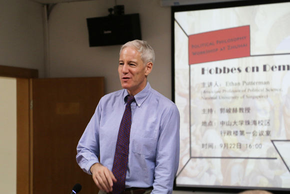 On Thursday 22 September, 2016, Prof. Ethan Putterman of the National University of Singapore gave the inaugural presentation of Political Philosophy Workshop of the Department of Philosophy (Zhuhai) at Sun Yat-sen University, delivering a paper entitled ‘Hobbes on Democracy and War’. Prof. Putterman is an eminent political theorist and Rousseau scholar, who is now transitioning into Hobbes studies as part of his research project on the role of social psychology in early modern social contract theory.
