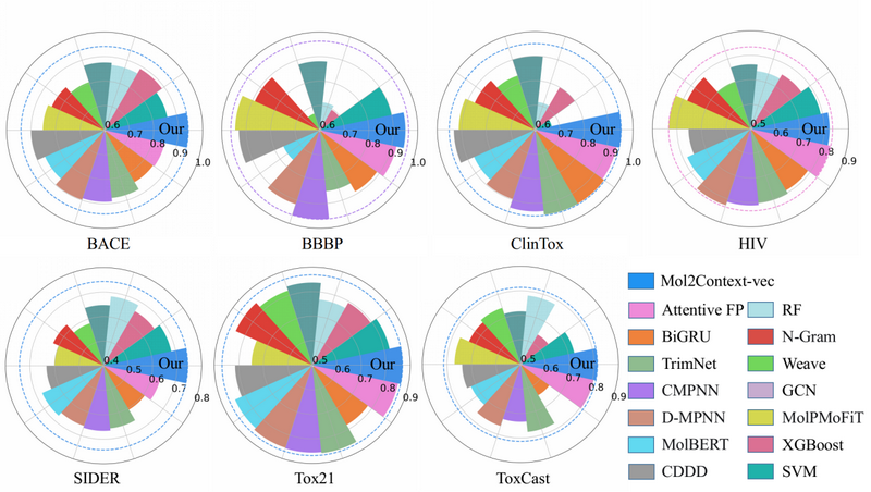 Mol2context-vec achieves state-of-the-art performance on multiple biochemical benchmark datasets, which proves the competitiveness of this work in promoting molecular representation learning. The model also provides easy to interpret model results, which will improve researchers' potential factors understanding of molecular activity and toxicity.