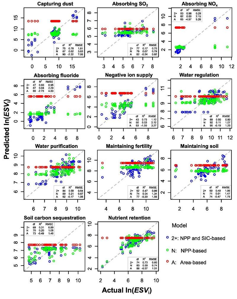 Figure: Comparing the model performance of three ecosystem service valuation approaches