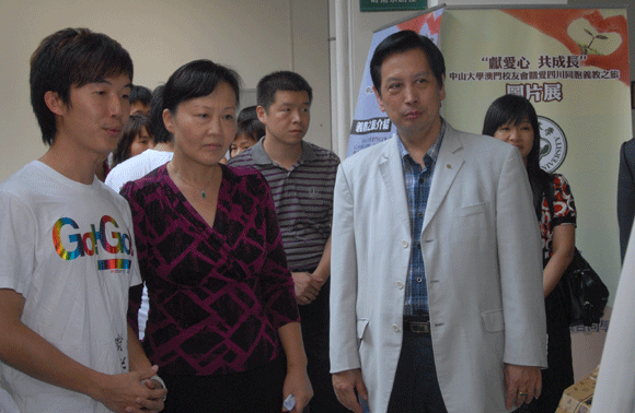 The exhibition on display told the experiences of the representative alumni and 11 SYSU students from Macau who had volunteered from September 4-11 in Taziba middle school, Dujiangyan. The exhibition is expected to be on display in the other three campuses in the coming days, so as to inform more students of the current developments in the earthquake-hit areas in Sichuan Province, and encourage them to participate more actively in social cause by carrying out the spirit of the University motto.