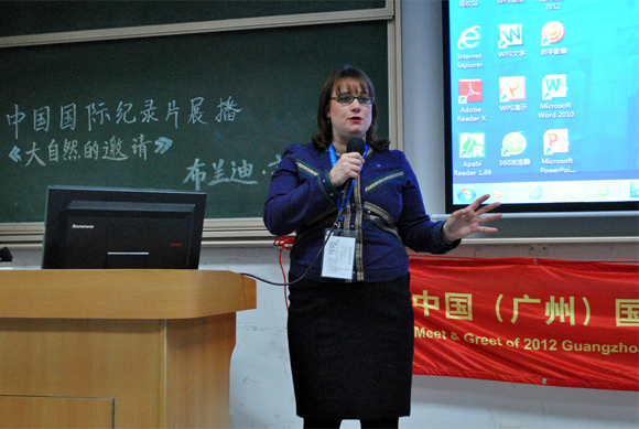On the evening of December 7, "Nature's Invitation", an award-winning documentary at the 2012 Guangzhou International Documentary Film Festival (GZDOC 2012), was screened on East Campus. Brandy Yanchyk, the director, arrived at the activity and shared her experience filming the documentary and her thoughts on life with students. Madam Brandy Yanchyk has produced news documentaries for multiple international televisions, radio stations and websites, including BBC, CBC, OMNI Television and Deutsche Welle Radio.