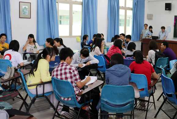 Students communicating at Lingnan English Corner