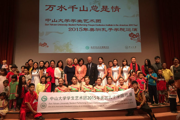 From September 22 to October 5, 2015, Sun Yat-sen University (SYSU) Student Performing Troupe staged shows at 7 Confucius Institutes in three countries in the Americas, including the Confucius Institute at Indiana University-Purdue University Indianapolis (IUPUI), Confucius Institute at National Autonomic University of Mexico, Huaxia Confucius Institute in Mexico City, Confucius Institute at Autonomic University of New Leon, Confucius Institute at Autonomic University of Chihuahua, Confucius Institute at Autonomic University of Yukatan, and Confucius Institute at University of Costa Rica. Among them, the Confucius Institute at IUPUI was jointly established by SYSU and IUPUI; and the Confucius Institute at Autonomic University of Yukatan was jointly established by SYSU and the Autonomic University of Yukatan. The tour was organized by the Confucius Institute Headquarters (Hanban), and undertaken by the Office of Confucius Institutes of SYSU and the SYSU Youth Association. It is part of the “three tours” (tour for performance, tour for lectures, and tour for exhibition) activities organized by Hanban, which aims to promote Chinese traditional art and culture.