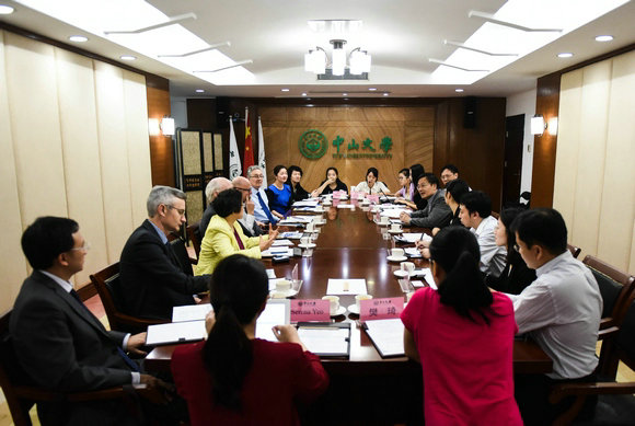 Prof. Yan Guangmei, Vice President of SYSU met with the QUT delegation in Zhongshan Building on South Campus, accompanied by Prof. Ling Wenhua, Director of Office of International Cooperation & Exchange, Mr. Zhu Libin, Deputy Director of Academic Training Office of Graduate School, Prof. Wang Xuemei, Associate Dean of School of Environmental Science and Engineering, and representatives from Office of Scientific Research and School of Public Health.
