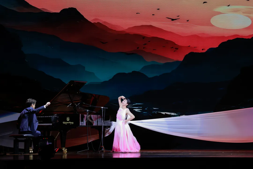 Gao Yang, Li Siyuan and Lin Weidong played the guzheng repertoire Cang Ge Yin and integrated guzheng, piano and percussion instruments to expressed their admiration for life. Zhao, Li and Wang Yiting played the Cantonese song Colorful Clouds Chasing the Moon and Brahms Hungarian Dance No. 5 in four hands, showing the Eastern and Western nationalities.