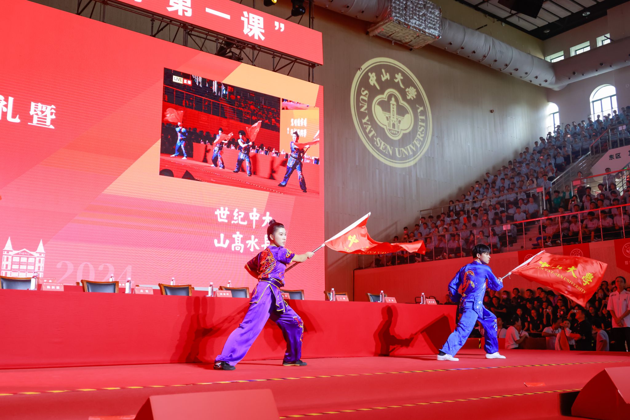 Following a series of inspiring performances, the opening ceremony kicked off, which was chaired by Yang Qinghua, executive vice president of SYSU, and that was attended by SYSU President Gao Song, along with other leaders, faculty and new students.