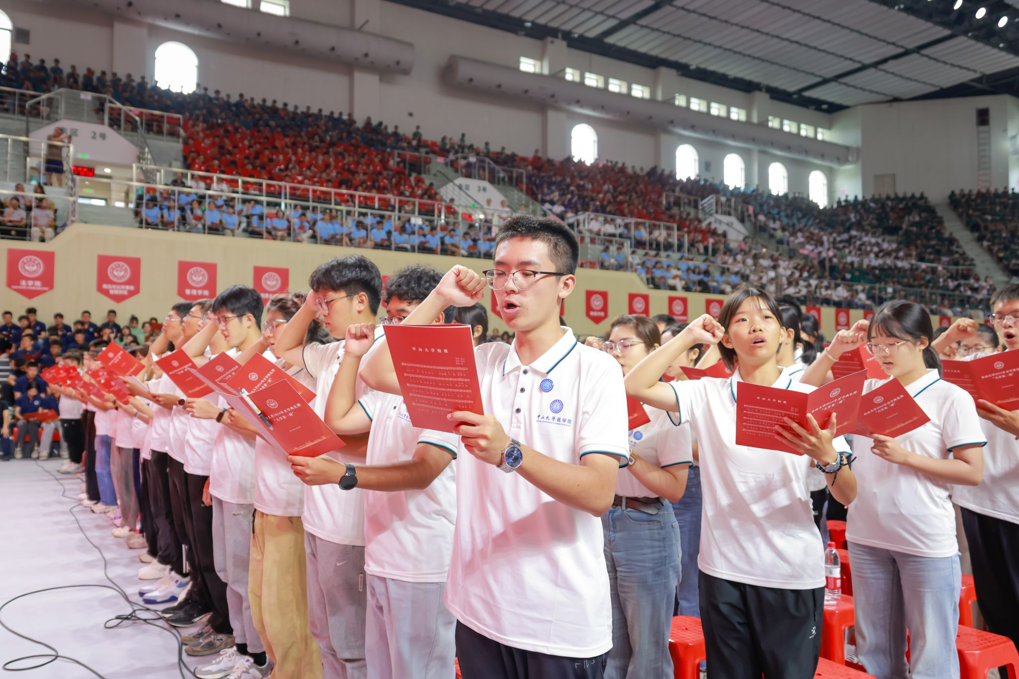 Led by vice president Liu Jike, the freshmen class took the solemn oath as new members of the SYSU community, expressing that they will remember the university motto, shoulder the mission of the era, advocate science and reason, study diligently, seek truth and innovate.