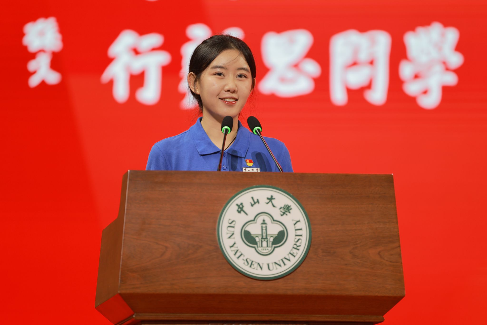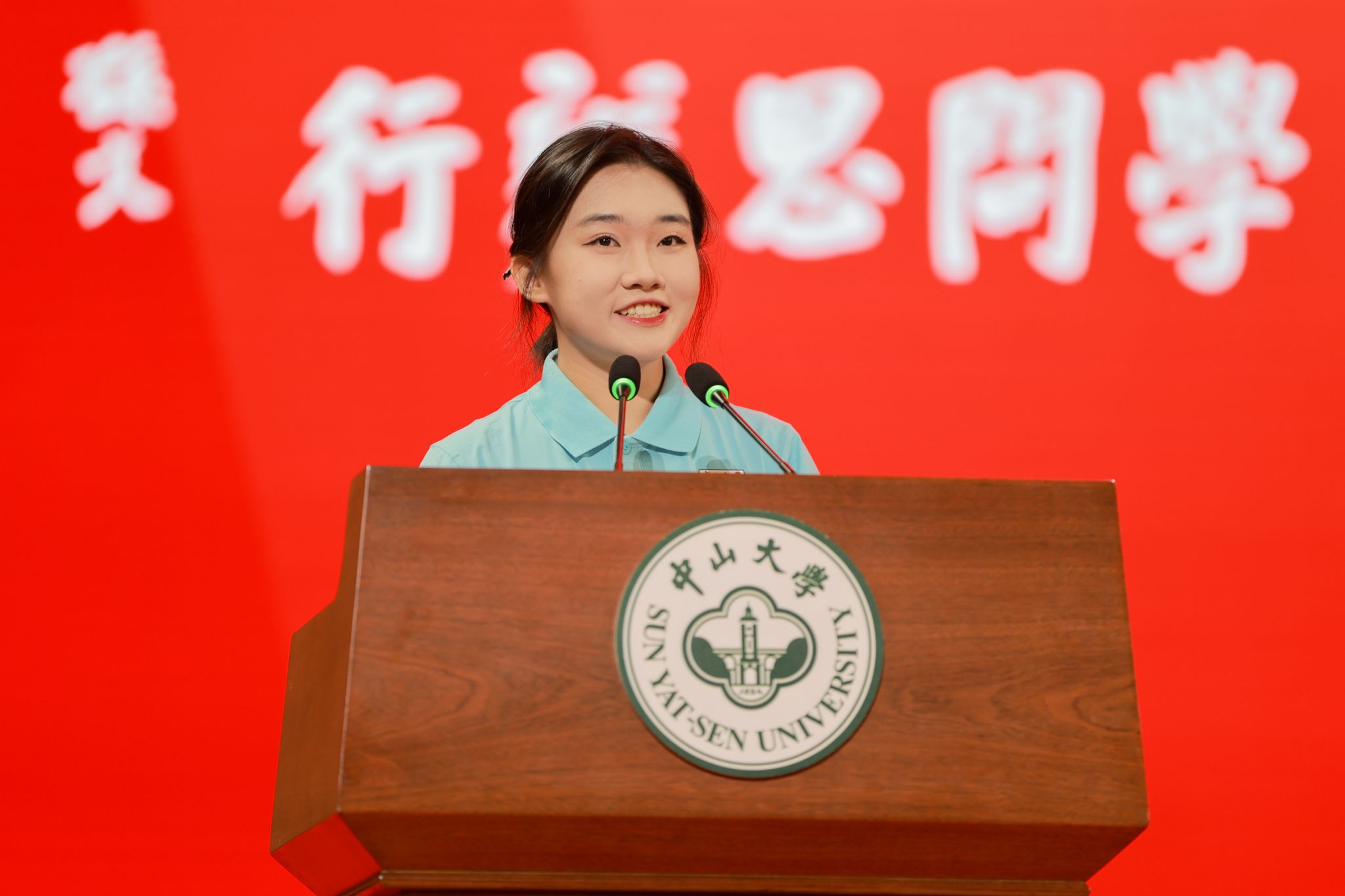 Wang Yiyi, a student from School of Atmospheric Sciences, spoke as a new undergraduate student representative. She shared her excitement about joining SYSU during its centennial year. She called on her peers to follow the footsteps of the older generation of the university, establishing ambitious goals and striving for excellence during their journey at SYSU. “The spirit of dedication, hard work, and innovation are what we can display to celebrate the university’s centennial anniversary,” Wang said.