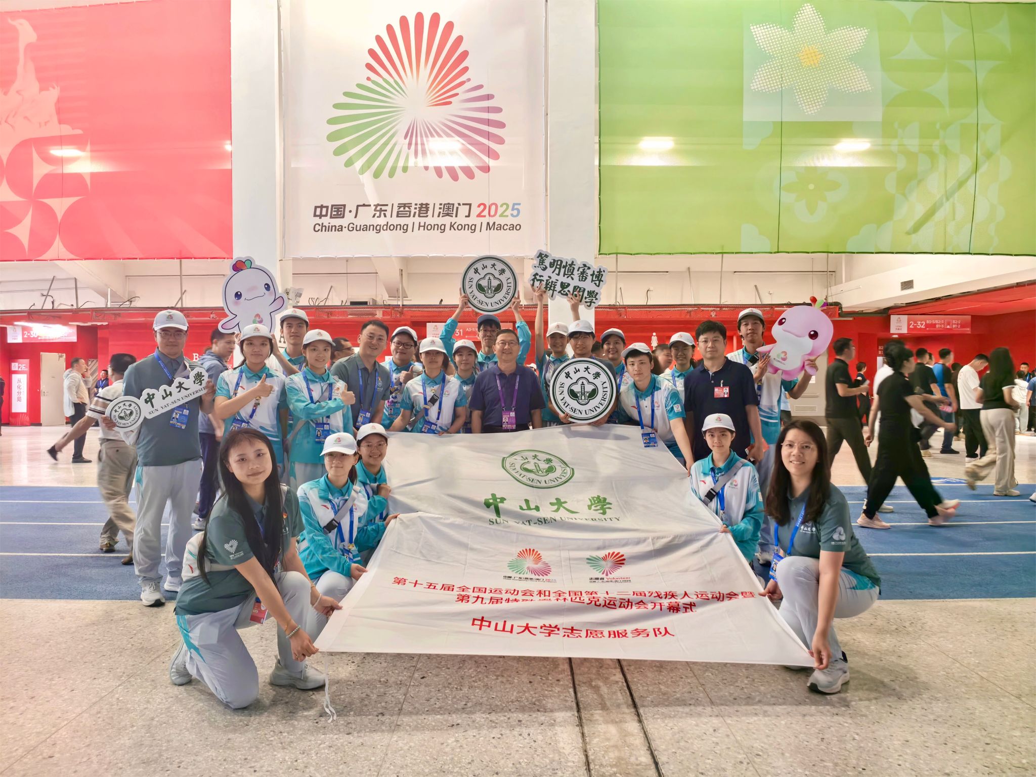 Meanwhile, SYSU's "Little Dolphins" volunteer team served as a vibrant force throughout the event. A total of 906 volunteers were deployed across Guangzhou, Shenzhen, and Zhuhai, with 427 participating in the opening ceremony following months of rigorous training. Their duties spanned audience services, venue operations, protocol, and cheerleading.