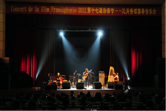 On the evening of Mar. 30th, the 17th French Festival: March Music Spree & Concert of Four French-Speaking Countries was held successfully in K.K. Leung Hall, Sun Yat-sen University. The concert was organized jointly by the Consulate Generals of France, Belgium, Canada and Switzerland in Guangzhou, Canton French Alliance and Sun Yat-sen University. Four bands from France, Canada, Belgium and Switzerland put on a fabulous show that night.