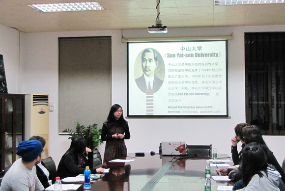 The establishing ceremony for international student volunteer team was held on November 14 on South Campus of Sun Yat-sen University. Seventeen students from sixteen countries came from four campuses to participate in the event. Dr. Wu Xiaoyan, Director of Office for International Students’ Affairs (ISO), gave an opening address to welcome the students and thank them for their enthusiastic involvement in the team.