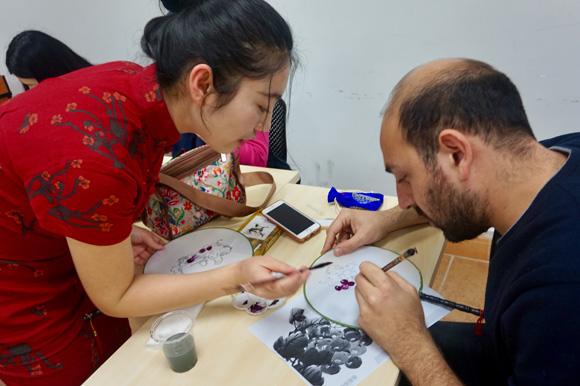 When the salon was concluded, some students were still reluctant to leave. They added the last tint to their fans and expressed their sincere gratitude to the students who organized this activity. Grigorios Ntilis, a student from Greece said, “Thank you so much. I am very glad to take part in this activity. It is full of Chinese flavor.”