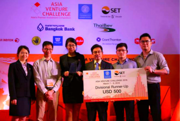 The ASIA VENTURE CHALLENGE 2016, formerly ASIA MOOT CORP competition, was held in Bangkok, Thailand on March 7-9. Team Leadx with Branson HOU (15FI), Henriette HOU (15PA), Jason GUO (15PB), Lawrence LUO (15PA) and Leona LIU (15PA) representing MBA program of Lingnan College of Sun Yat-sen University, was invited to participate in the competition. Team Leadx won 60-Second Elevator Pitch and Divisional Runner-up Awards with their impressive performance.