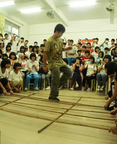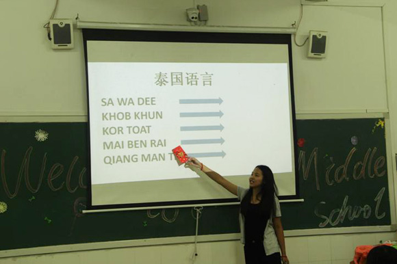 The international student volunteers were divided into small groups to share their own culture, history, language, and food with the high school students from 38 classes. Kevin Kurcz-Seitz from Germany talked about his “Chinese Dream”; Leesiriroj Supranee from Thailand taught Thai language with vivid examples, which encouraged the high school students to learn more about their neighboring country’s culture and language; Bui Duy Anh and Bui Thi Thu Trang from Vietnam introduced traditional Vietnamese Bamboo dancing and women’s clothes, which impressed the students a lot and got a big applause. The international students’ classroom activities were highly praised by both the teachers and students of Jiangkou High School.