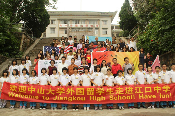 43 SYSU international students from 23 countries volunteered for the cultural exchange activity at Jiangkou High school in Zhaoqing City on the weekend of September 12-13, 2015.
