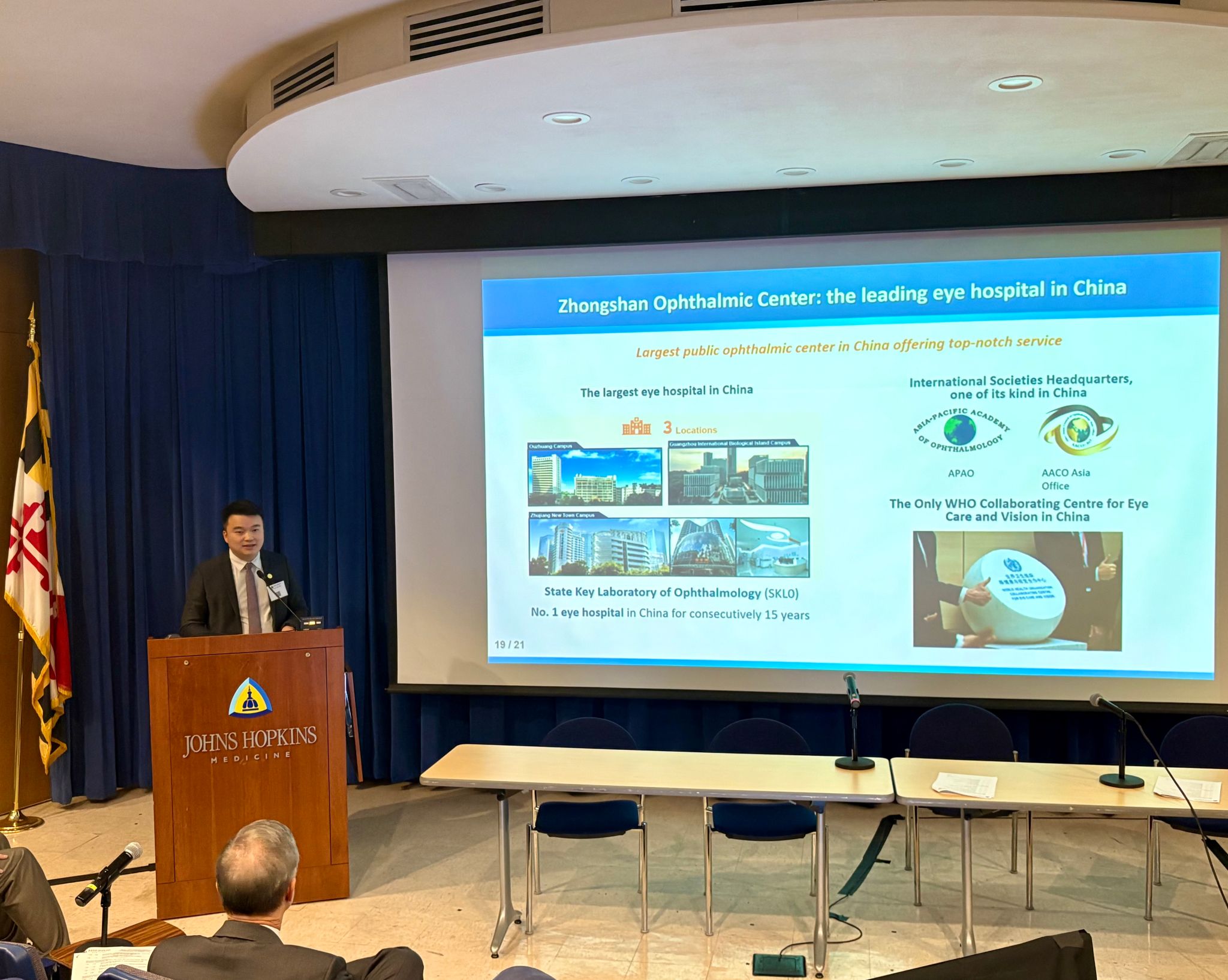 The year 2025 marks the 100th anniversary of the Wilmer Eye Institute, Johns Hopkins University and the 60th anniversary of the Zhongshan Ophthalmic Center (ZOC), Sun Yat-sen University. On Jan 11, Prof. Haotian Lin, director of ZOC, visited the Wilmer Eye Institute as the only invited Chinese scholar.