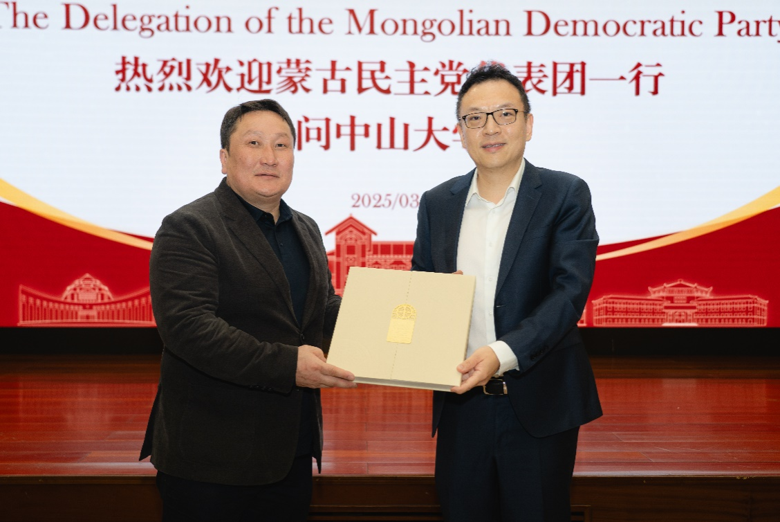 On March 26, a delegation from the Mongolian Democratic Party visited Sun Yat-sen University (SYSU) in Guangzhou. Representatives from both sides expressed a shared commitment to deepening cooperation in academic research and talent cultivation.