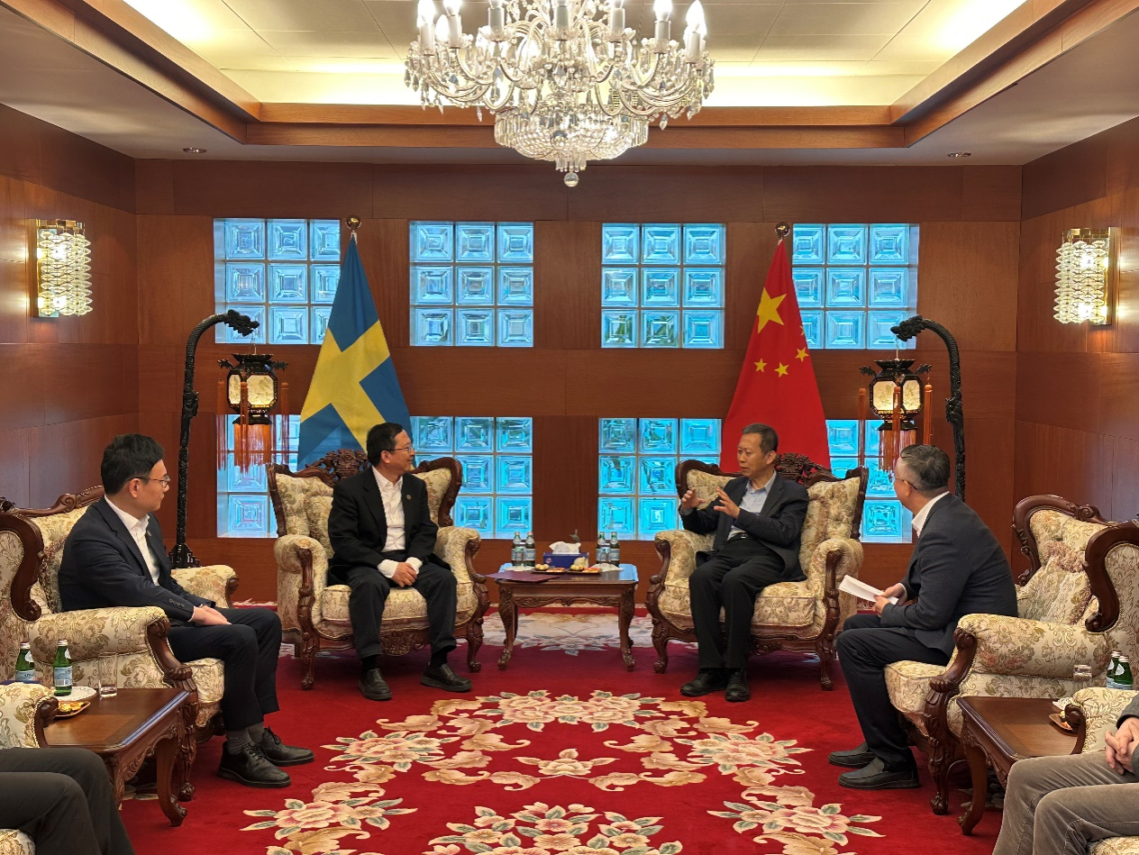 During his visit to Sweden, Prof. Song Gao and his delegation met with Cui Aimin, China's ambassador to Sweden, at the Chinese Embassy in Sweden. Ambassador Cui briefed the delegation on the current state of China-Sweden relations and the development of higher education in Sweden, expressing continued support for deeper cooperation and exchanges between the university and Swedish institutions.
