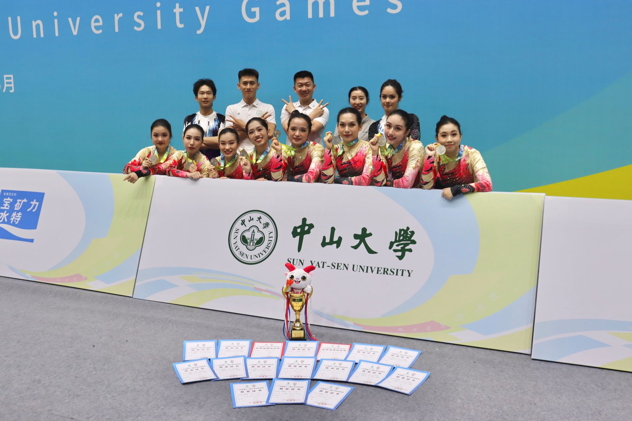 In the aerobics competition, SYSU placed second in the Group A aerobic dance event, fifth in the trio routine, and sixth in the mixed pair category. The team ranked seventh overall in Group A total points through consistent performance.