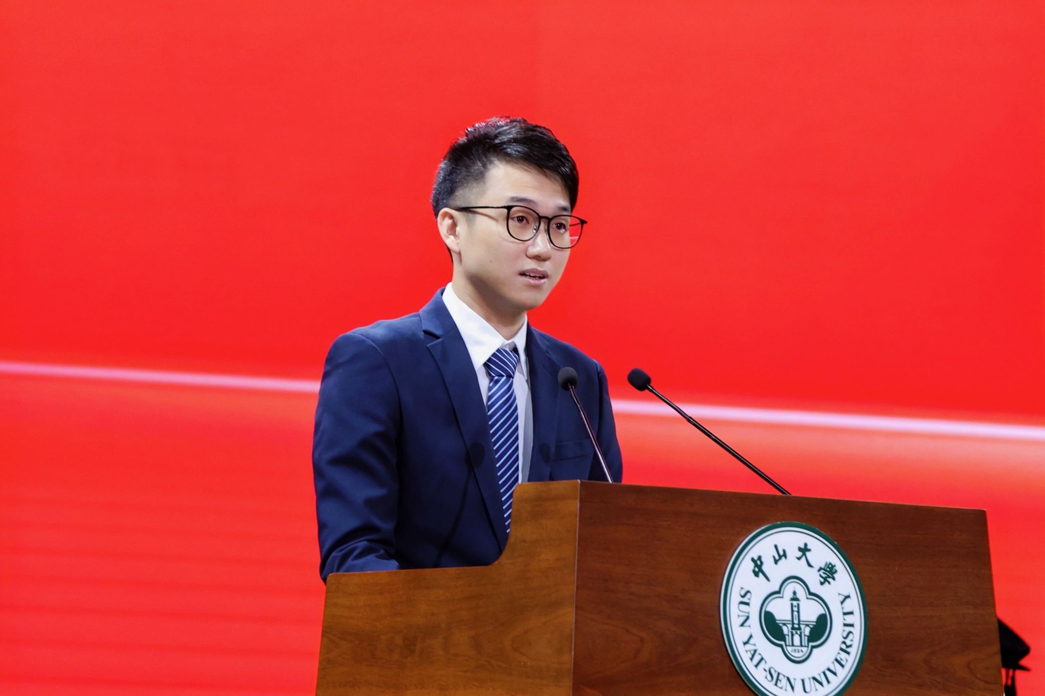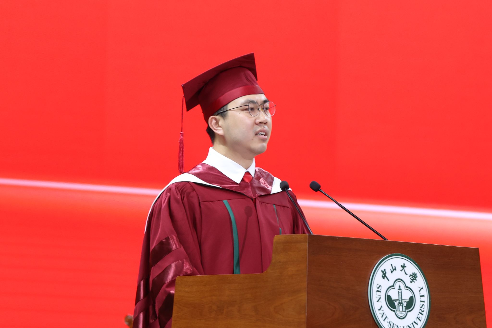 Yuxuan Liu, from the School of Life Science, spoke as the representative of undergraduates. Qianwen Zeng, a doctoral graduate from the First Affiliated Hospital of SYSU, spoke as the representative of graduate students. Kairan Chen, an alumnus who graduated from the School of Computer Science and Engineering in 2013 with a bachelor's degree and graduated from the School of Software Engineering in 2017 with a master's degree, and currently Founder & CTO of Tungee Technology, delivered a speech as the alumni representative.