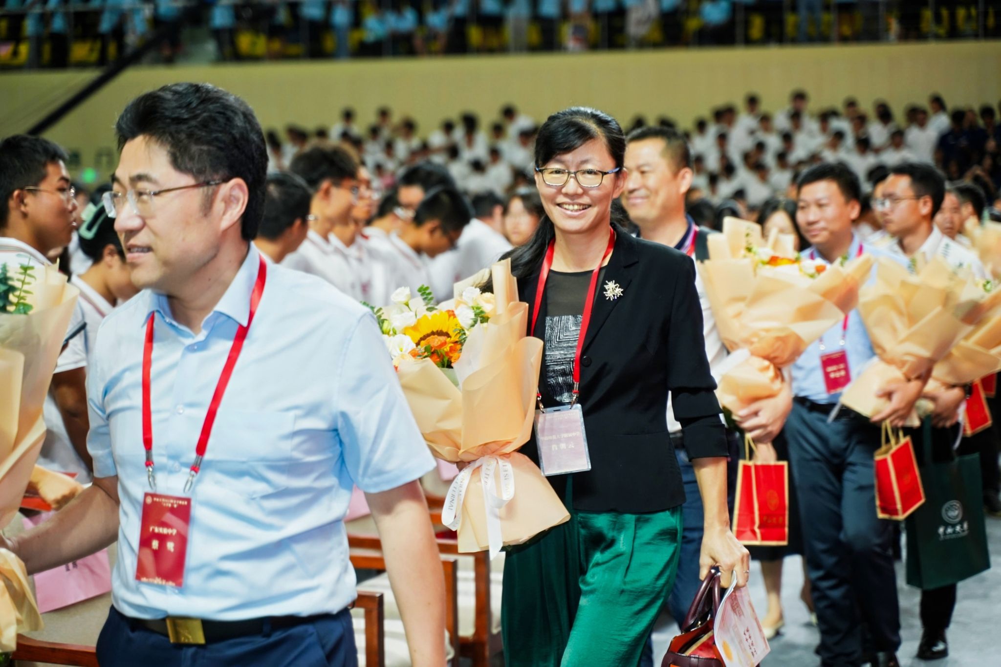 As the 41st Teachers' Day approaches, teacher representatives from 21 high schools across the country were also invited to attend the opening ceremony. During the ceremony, a representative of the freshmen presented flowers to the principals of their alma maters to express gratitude for their dedicated guidance and nurturing.