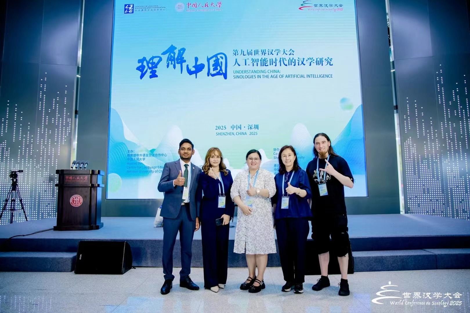 HEENA RATHORE (second from the left), a Pakistani doctoral student pursuing her studies at SYSU through the China Studies Program (CSP), participates in the 2025 World Conference on Sinology.