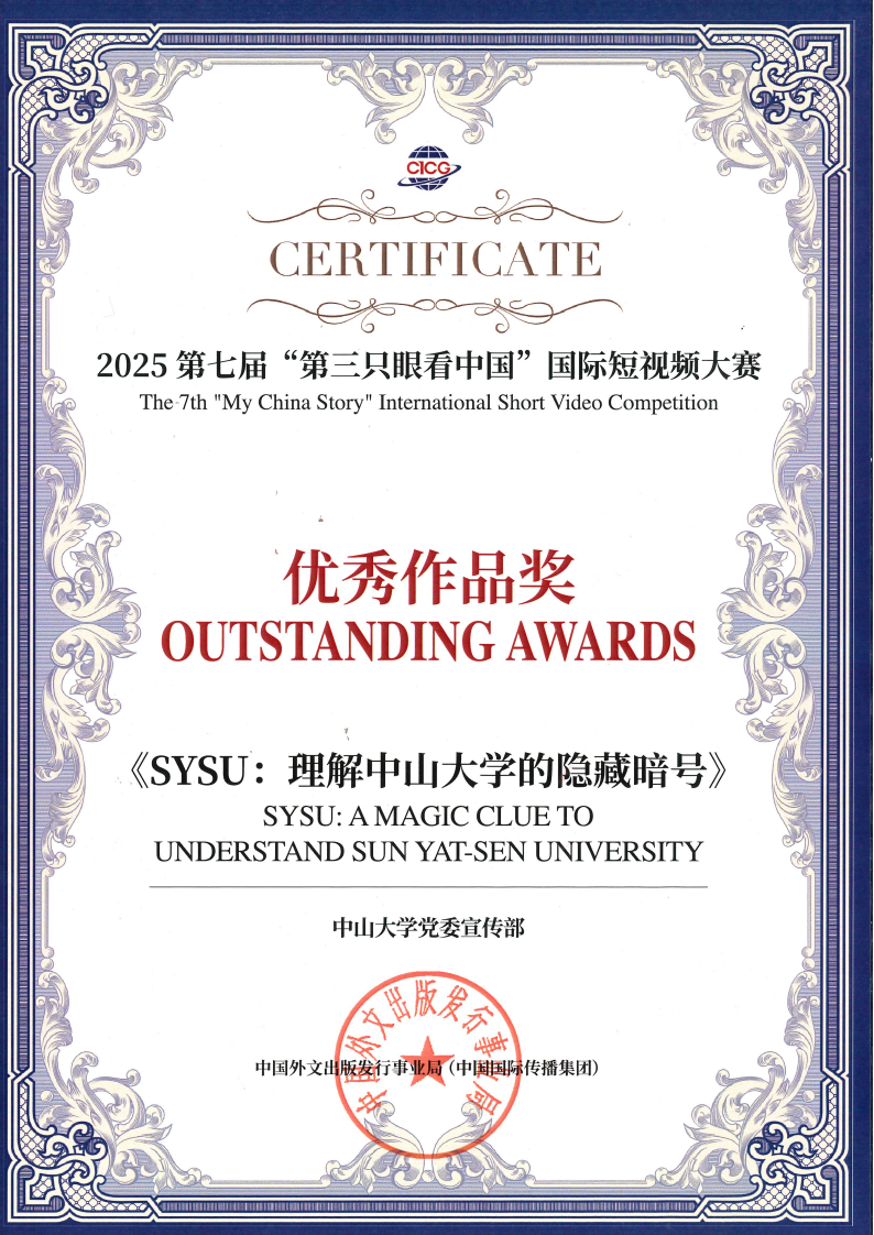 We are proud to announce that Sun Yat-sen University's English promotional film, "SYSU: A Magic Clue," has been honored with the Outstanding Award at the 7th "My China Story" International Short Video Competition.