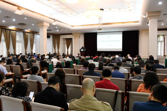 On March 28, 2019, Sun Yat-sen University (SYSU) held the 2019 Work Conference on Laboratory Safety in Swasey Hall on Guangzhou South Campus. The conference was aimed to implement the series of important instructions on work safety given by the CPC Central Committee and the State Council, review work experience, identify and analyze existing problems, further strengthen laboratory safety, and ensure the long-term and steady development of the university cause. Secretary Chen Chunsheng, President Luo Jun, Vice President Yang Qinghua, Assistant President Liu Jike, as well as directors and deputy directors of relevant departments and units, heads of relevant schools and departments, heads of member units of the university laboratory safety committee, presidents and vice presidents of affiliated hospitals, laboratory safety staff, a total of over 150 people attended the conference. The conference was presided over by Vice President Yang Qinghua.