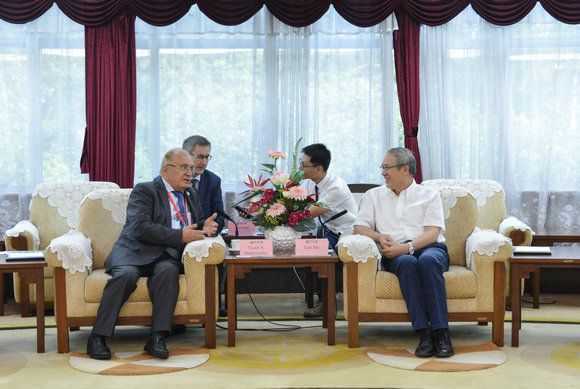 On the afternoon of September 12, 2017, Professor Victor A. Sadovnichiy, Member of the Russian Academy of Science and Rector of Lomonosov Moscow State University (MSU), and Yuri A. Mazei, Vice Rector of MSU, visited Sun Yat-sen University (SYSU). Professor Luo Jun, President of SYSU met with the guests in the VIP Room of Zhongshan Building on Guangzhou South Campus.