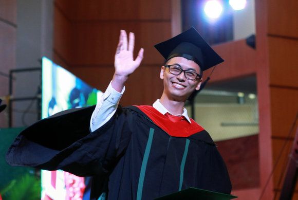 As an outstanding graduate, Kong Deqi from the Department of Chinese said that he will remember the President’s hope and his identity of being a member of the SYSU community. He will strive to become a leading figure in his field “for the welfare of the society and for the glory of the country”.