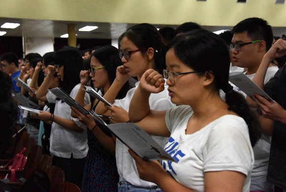 At the end of the ceremony, all teachers and students sang the university anthem together.