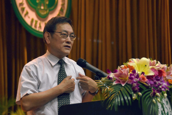 Professor Huang Tianji giving the first lecture at the university on Guangzhou South Campus