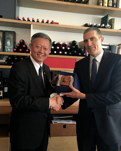 Afterwards, the delegation was invited to the Israeli Ministry of Foreign Affairs, where they were warmly received by officials headed by Mr. Hagai Shagrir, Director of the Northeast Asia Division of the Ministry. During the meeting, Secretary Chen said that with implementation of the "One Belt and One Road” initiative, Middle Eastern Studies have become one of the most vigorous and promising fields of area studies. He expressed the willingness of SYSU to intensify the cooperation with universities in Israel and promote academic research in this area. He stressed that as China and Israel are both countries with glorious ancient civilizations and vigorous modern cultures, exchanges in humanities between universities of both sides are of special significance and great value. Mr. Hagai Shagrir appreciated the efforts made by SYSU in pioneering the “Israeli Studies” program and promoting exchanges between China and Israel.