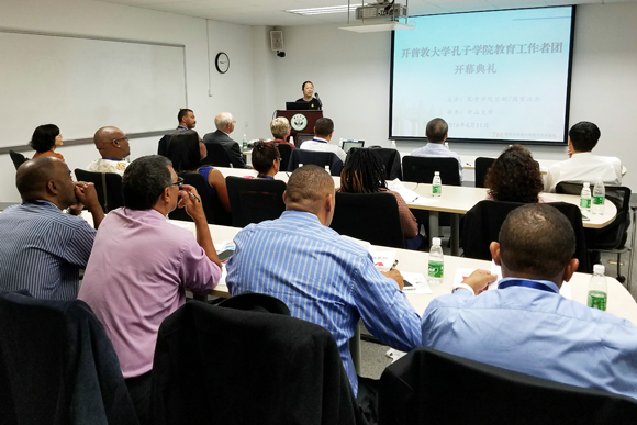On the morning of April 11, the opening ceremony was held on South Campus of SYSU. Gu Wenli, Deputy Director of Office of International Cooperation & Exchange and Executive Deputy Director of Office of Confucius Institute at SYSU, extended a warm welcome towards the guests. She introduced the history and development of SYSU and the general situation of the four Confucius Institutes co-constructed by universities overseas and SYSU. Professor Zhou Xiaobing, Director of CTM, introduced the general situation of CTM and teaching Chinese as second language at SYSU, and detailed the study and life of international students from South Africa as well as the volunteer Chinese teachers. He hoped to establish cooperation with secondary & primary schools and universities in South Africa.