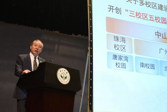 On the morning of November 21, 2015, the Report Meeting on the Development of Sun Yat-sen University was held in K.K. Leung Hall on South Campus of Sun Yat-sen University (SYSU). Prof. Luo Jun, President of SYSU, presented a report on strengthening planning and construction during the 13th Five Year Plan, implementing comprehensive reforms, and accelerating the steps to enter the first tier among universities nationwide. The meeting was presided over by Prof. Chen Chunsheng, Secretary of SYSU Party Committee.
