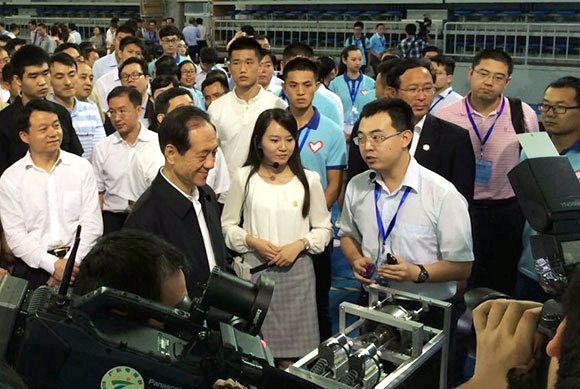 After the opening ceremony, Mr. Han Qide, Vice Chairman of the National Committee of the Chinese People’s Political Consultative Conference and President of the China Association for Science and Technology, visited SYSU student’s work “Energy Recovery Brakes Disc” and talked with SYSU contestant Diao Jianwei.