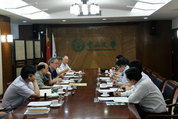 On April 29, 2015, a delegation led by Prof. Lu Gang, Party Secretary of Huazhong University of Science and Technology (HUST), and Prof. Ding Lieyun, President of HUST, visited Sun Yat-sen University (SYSU), and had a meeting with Prof. Luo Jun, President of SYSU, Prof. Chen Chunsheng, Executive Deputy Secretary and Vice President of SYSU, and Prof. Li Mengfeng, Vice President of SYSU.