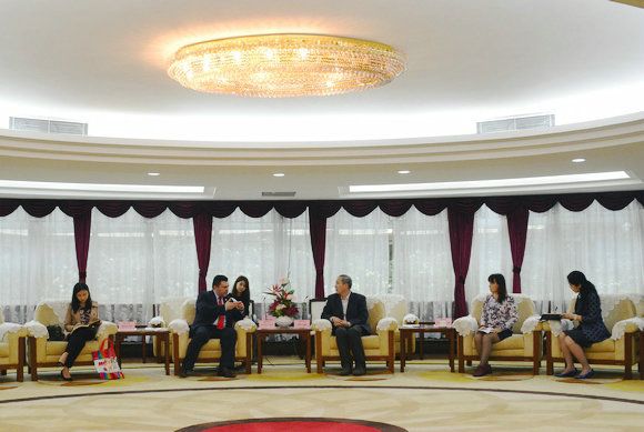 On the afternoon of April 3, 2015, a three-member delegation led by Mr. José Alberto Limas Gutiérrez, Acting Consul General of the Consulate General of Mexico in Guangzhou, visited Sun Yat-sen University (SYSU). Prof. Luo Jun, President of SYSU, met with the guests in Zhongshan Building, accompanied by Ms. Xu Yao, Deputy Director of Office of International Cooperation & Exchange, and Ms. Zhang Zhongli, Chair of Department of Spanish of School of International Studies.