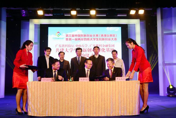 At the award ceremony, Sun Yat-sen University, Guangdong Provincial Department of Science and Technology, and Guangdong Technology Financial Group signed the Agreement to Jointly Build University Student Innovation and Entrepreneurship Incubation Base.