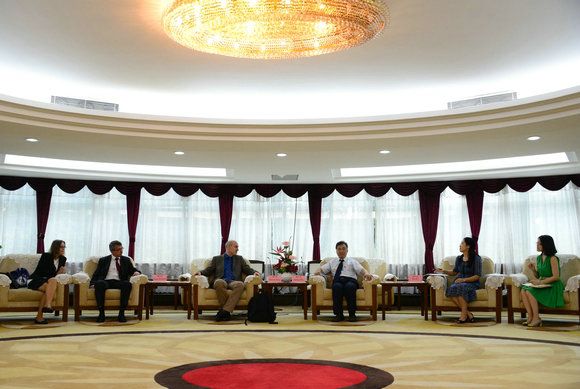 Prof. Michael Bollig, Vice-Rector for International Affairs of University of Cologne (UoC), visited Sun Yat-sen University (SYSU) on October 31, 2014. Members of the UoC delegation also included Dr. Stefan Bildhauer, Head of International Office; Dr. Susanne Preuschoff, Coordinator for Cooperation with the Global South; Mr. Matthias Kirste, Responsible for Incoming Students, International Office; and Ms. Qiu Lan, Head of UoC Beijing Office. Prof. Zhu Xiping, Vice President of SYSU, met with the guests, accompanied by Ms. Xu Yao, Deputy Director of Office of International Cooperation & Exchange (OICE) of SYSU.