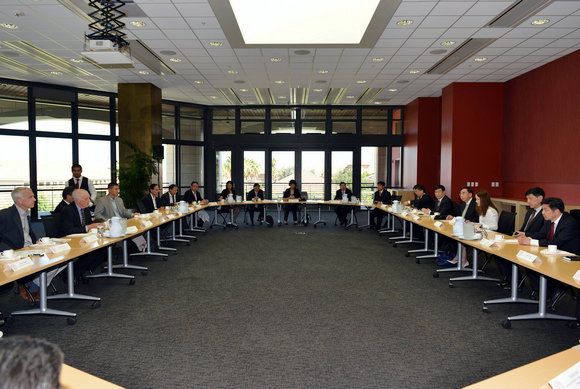 On the afternoon of September 22, President Xu Ningsheng accompanied Mr. Zhu Xiaodan, Governor of the People’s Government of Guangdong Province, to pay a visit to Stanford University. Prof. John Hennessy, President of Stanford University, and a group of Stanford professors of biomedicine and electrical engineering held a meeting with the delegation. The participants included Prof. Brian Kobilka, recipient of 2012 Nobel Prize in Chemistry, Prof. Michael Lebitt, recipient of 2013 Nobel Prize in Chemistry, and Prof. Thomas Sudhof, recipient of 2013 Nobel Prize in Physiology or Medicine.